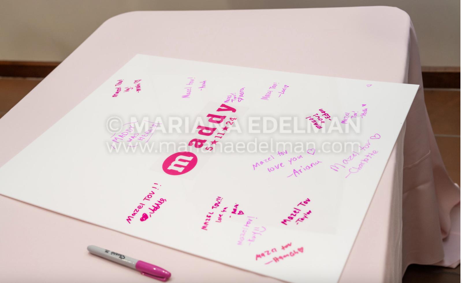 This custom sign-in board is a great keepsake and designed for both functionality and style to flow with the rest of your event. Perfect for guests to leave a message for the guest of honor at any occasion-birthdays, bar mitzvahs, weddings, anniversaries. Choose from 18” x 24” or 24” x 36”.